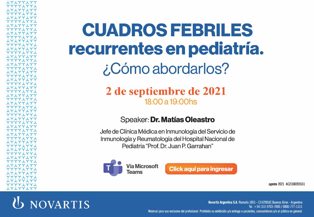 Te invitamos a participar de la charla «Cuadros febriles recurrentes en pediatría» el próximo 2 de septiembre de manera virtual ingresando en el siguiente link: Invitación no promo con link